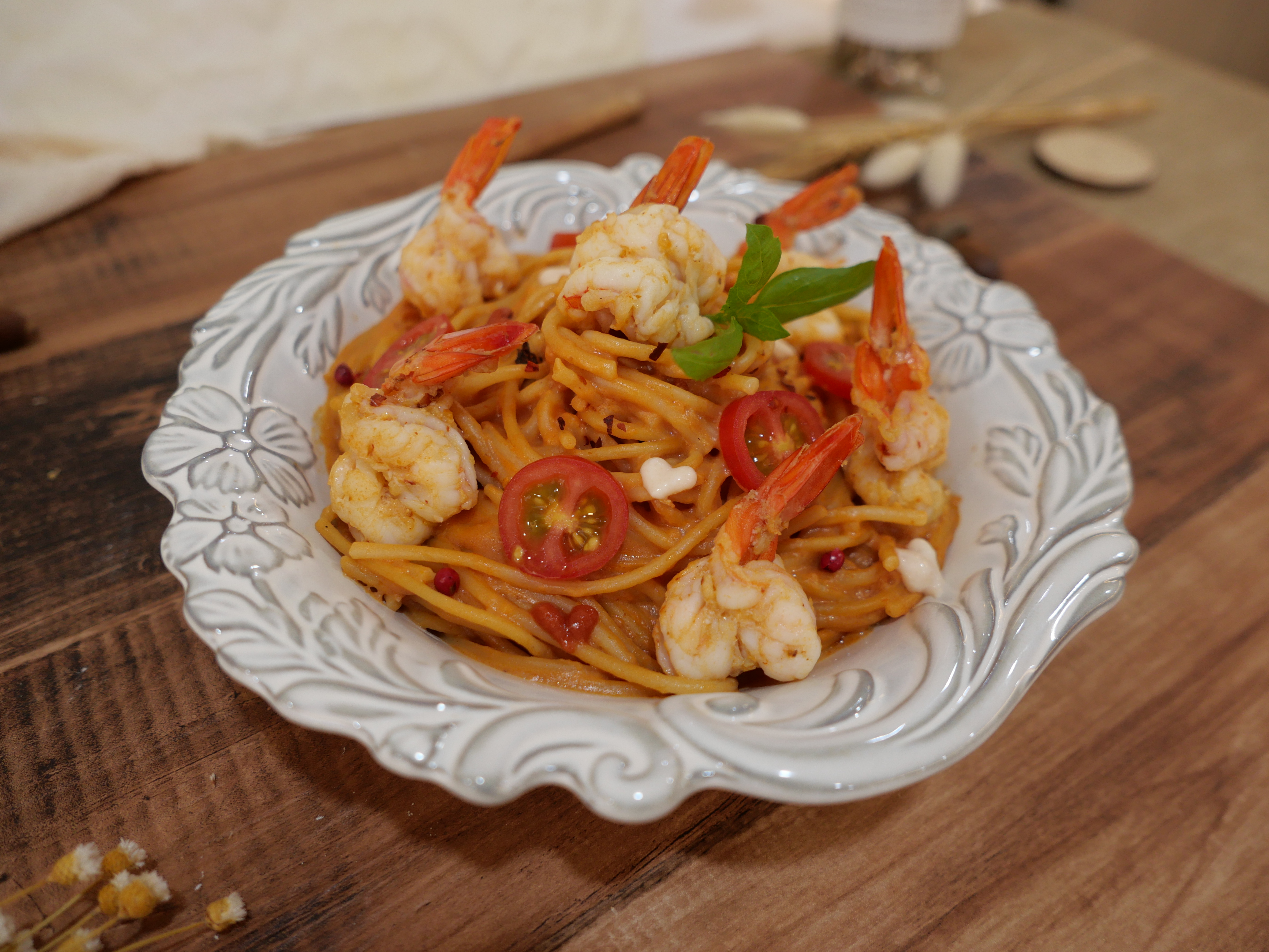 >白酒燉雞&鮮蝦粉紅醬義大利麵