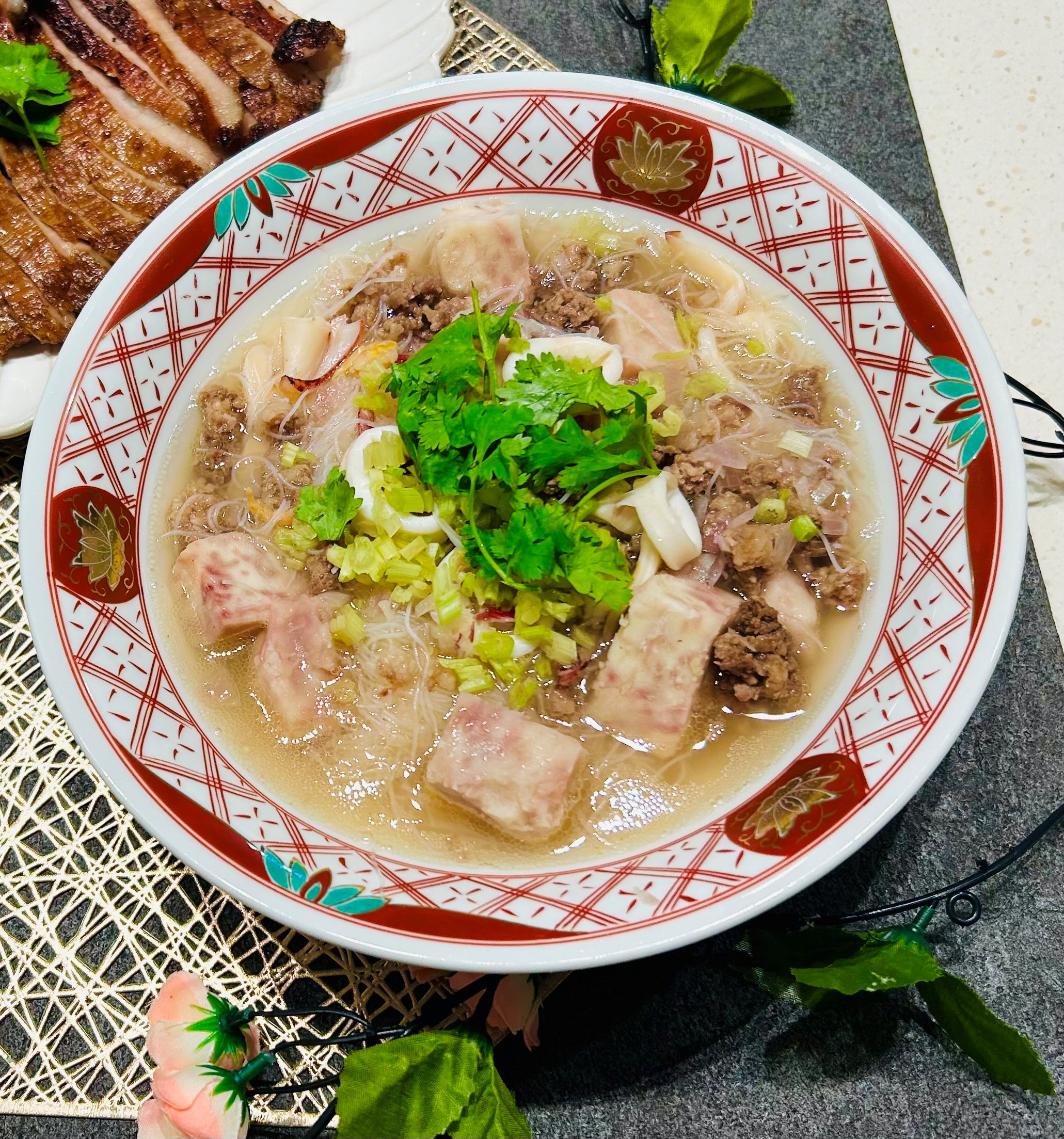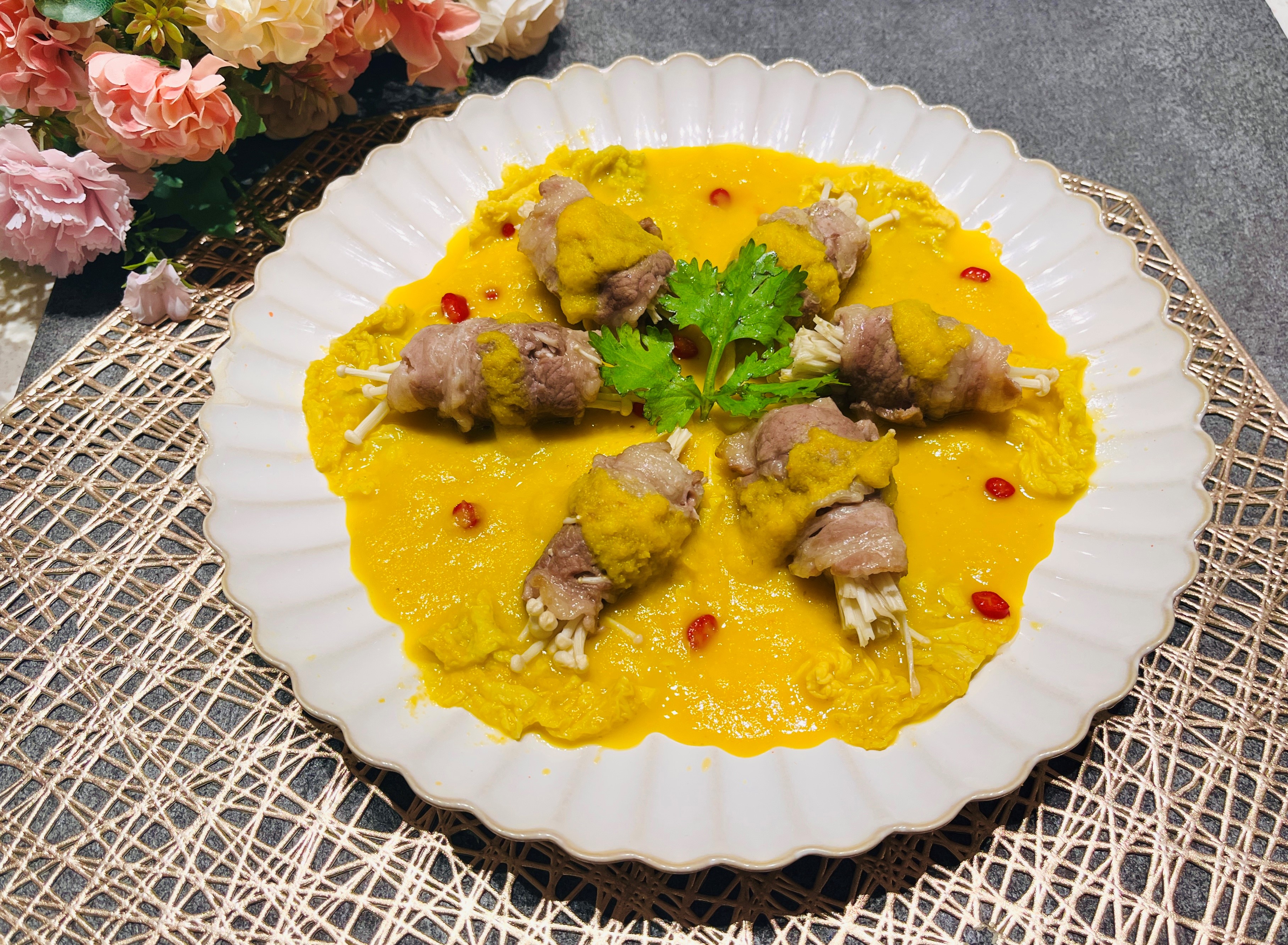 肥牛鮮菇捲佐酸辣金湯&肉骨茶