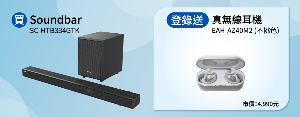 買Soundbar HTB334登錄送真無線耳機EAH-AZ40M2