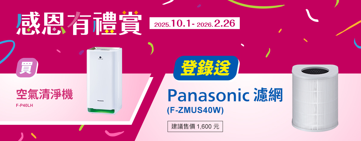 買空氣清淨機F-P40LH登錄送Panasonic濾網