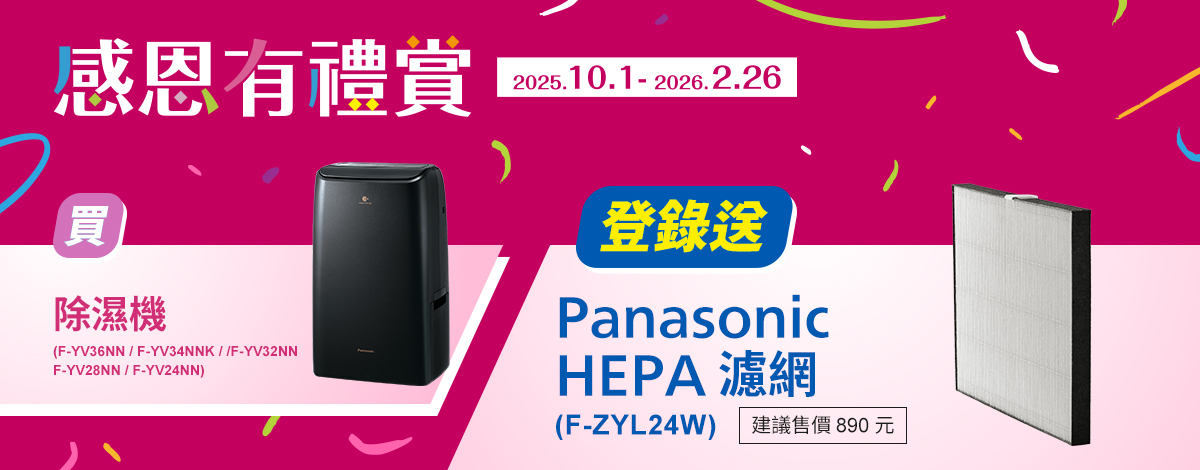 買除濕機指定機種登錄送HEPA濾網