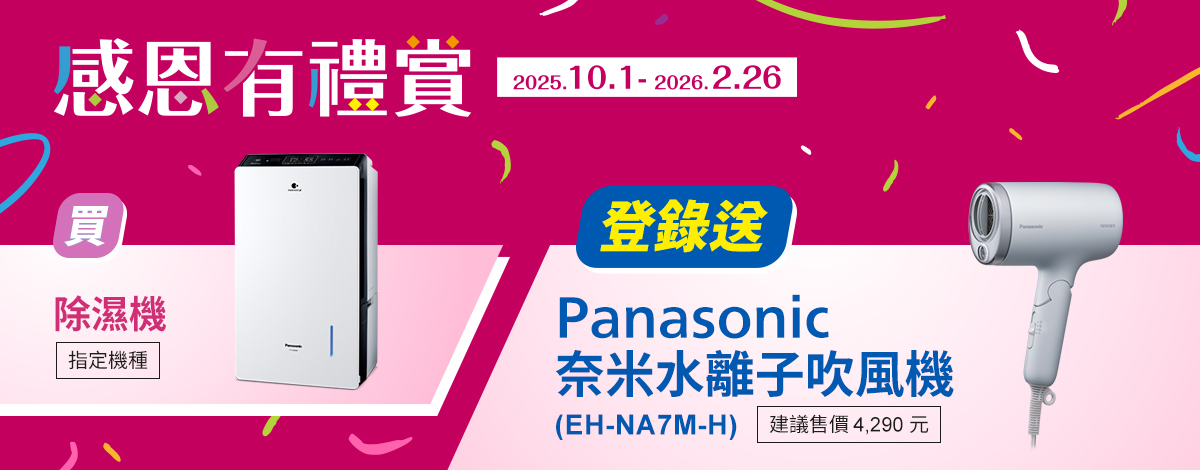 買除濕機指定機種登錄送奈米水離吹風機