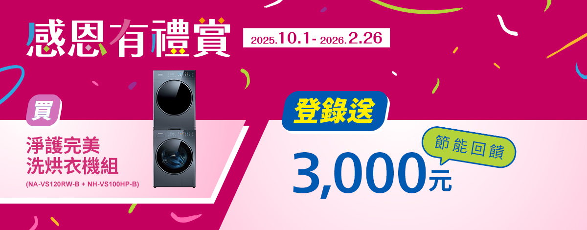 買淨護完美洗烘衣機組節能回饋3000元