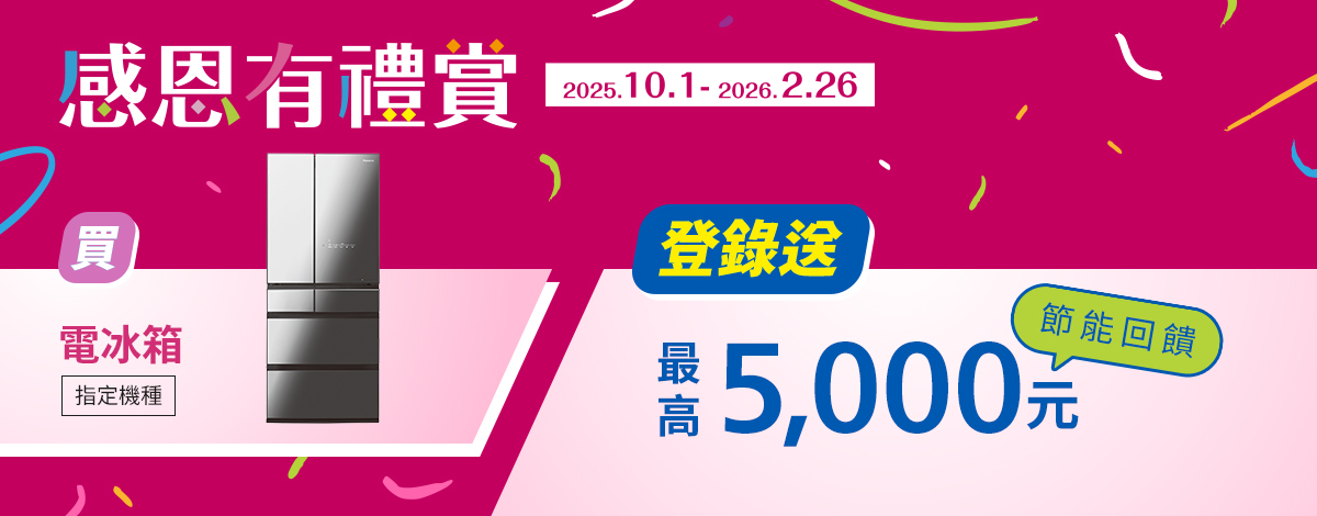 買電冰箱指定機種節能回饋最高5000元