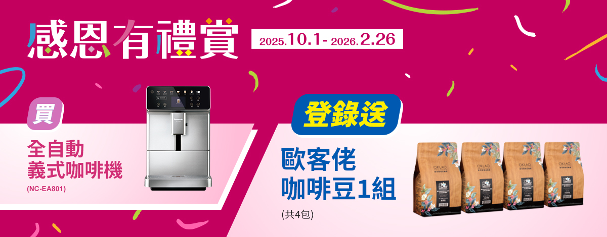 買全自動義式咖啡機登錄送歐克佬咖啡豆一組