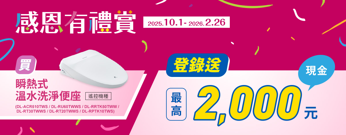 買瞬熱式溫水洗淨便座節能回饋最高2000元