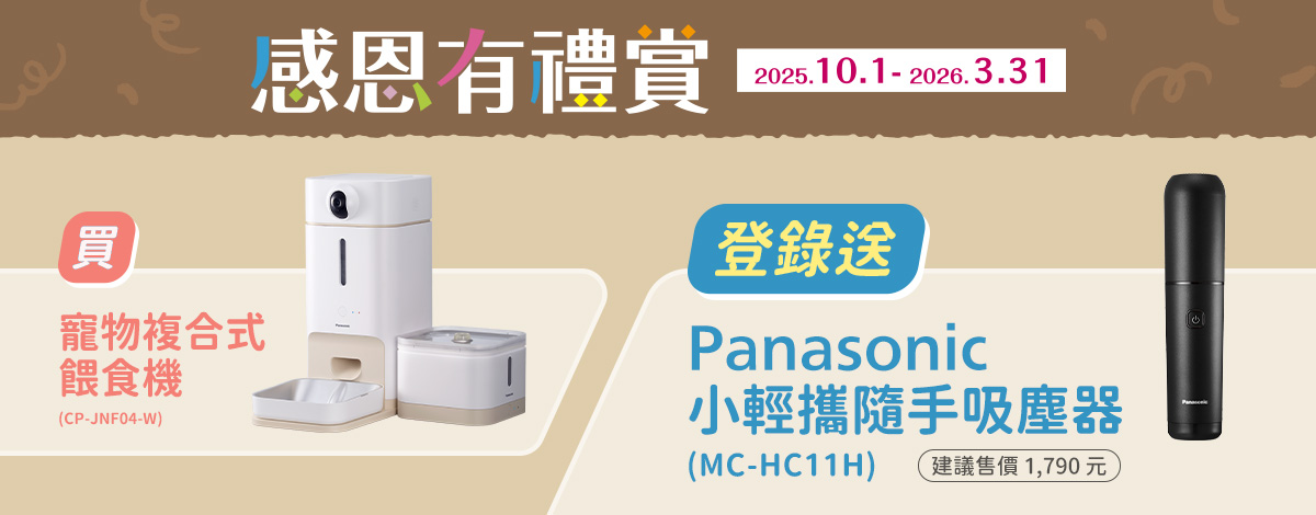 買寵物複合式餵食機CP-JNF04-W登錄送小輕攜隨手吸塵器